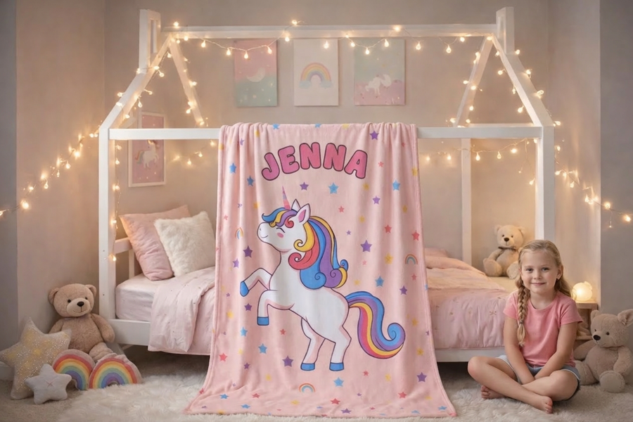 Personalized blankets for kids ages 0–8. Soft enough to sleep with, special enough to keep.