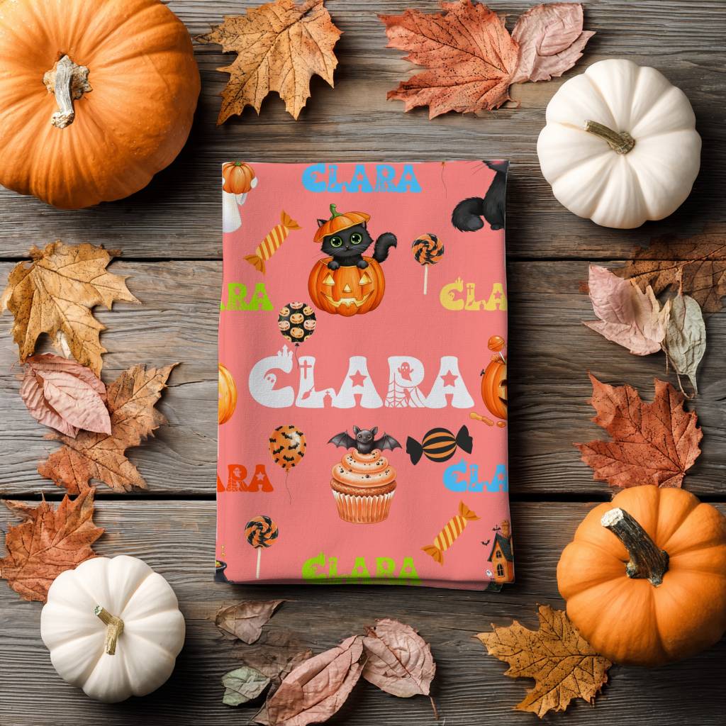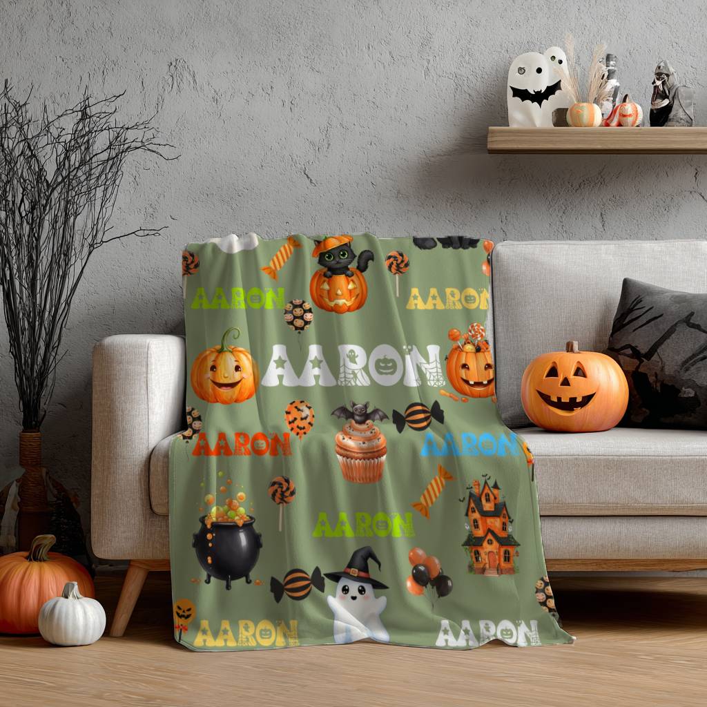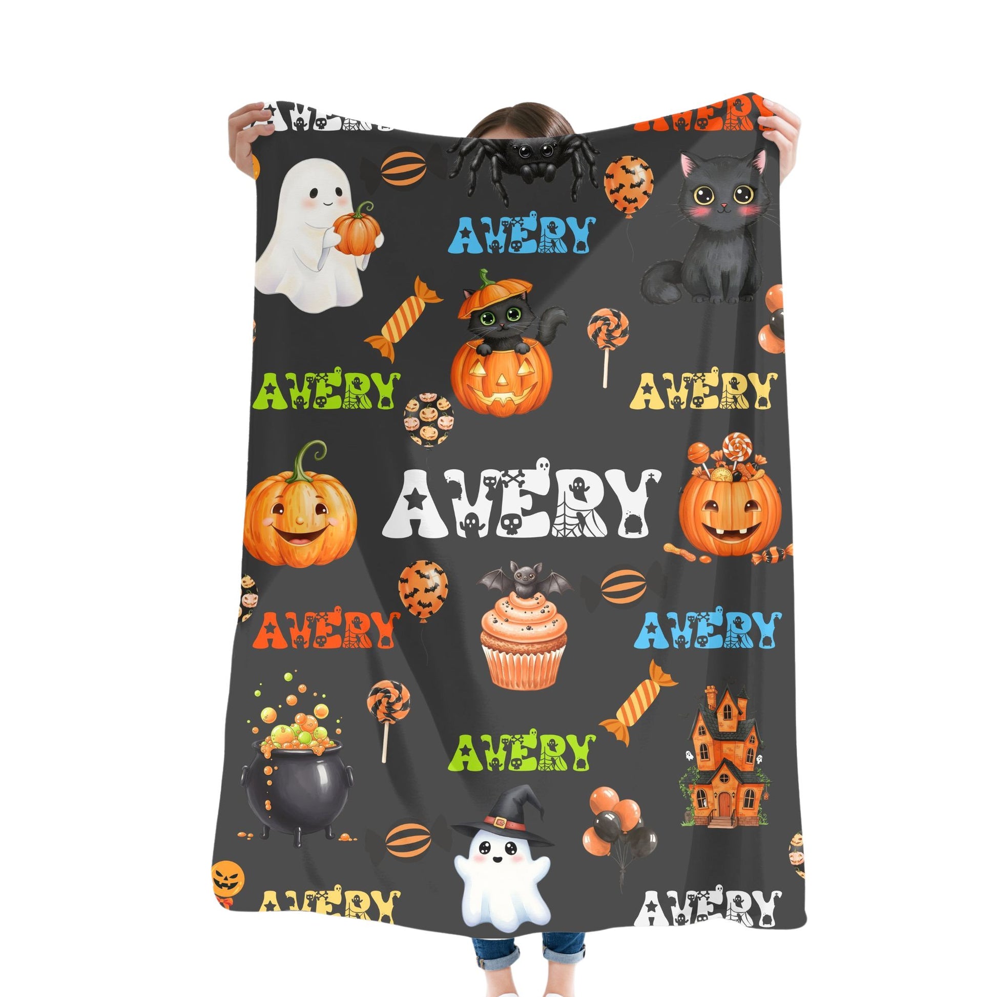 Add spooky fun and cozy warmth to your child’s room with this personalized Halloween blanket featuring pumpkins, ghosts, and bats-perfect for little ones who love festive adventures, playful spooks, and cozy snuggles.