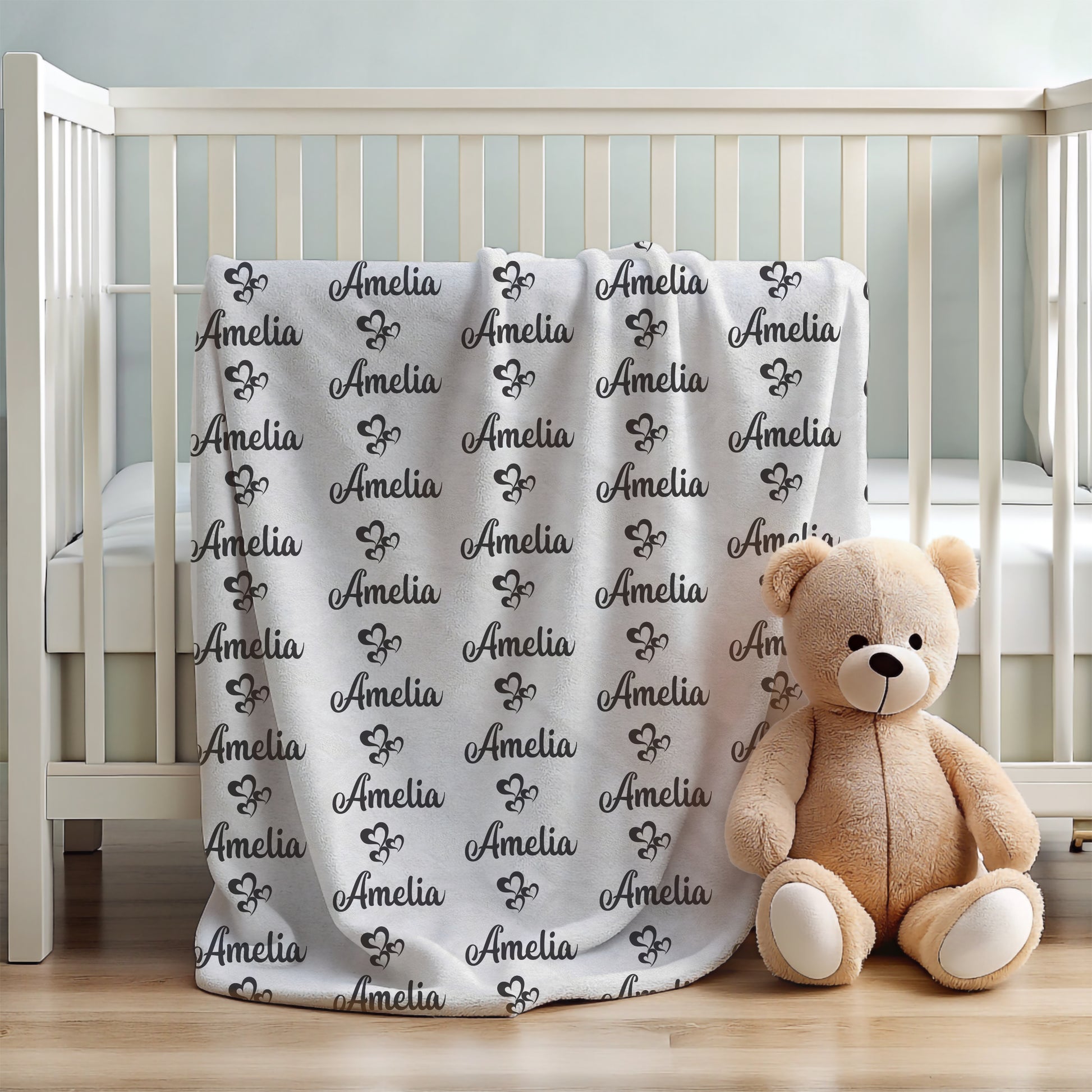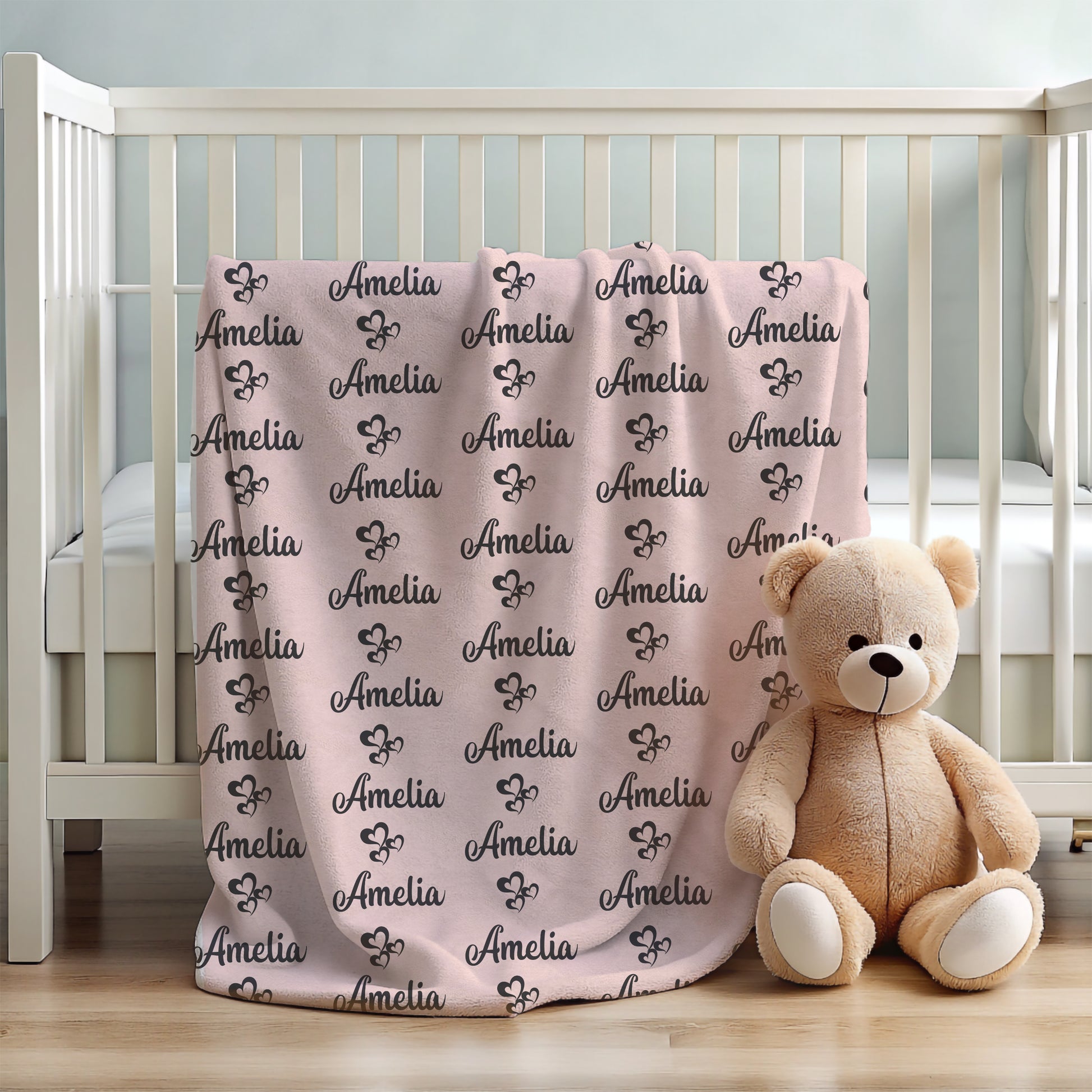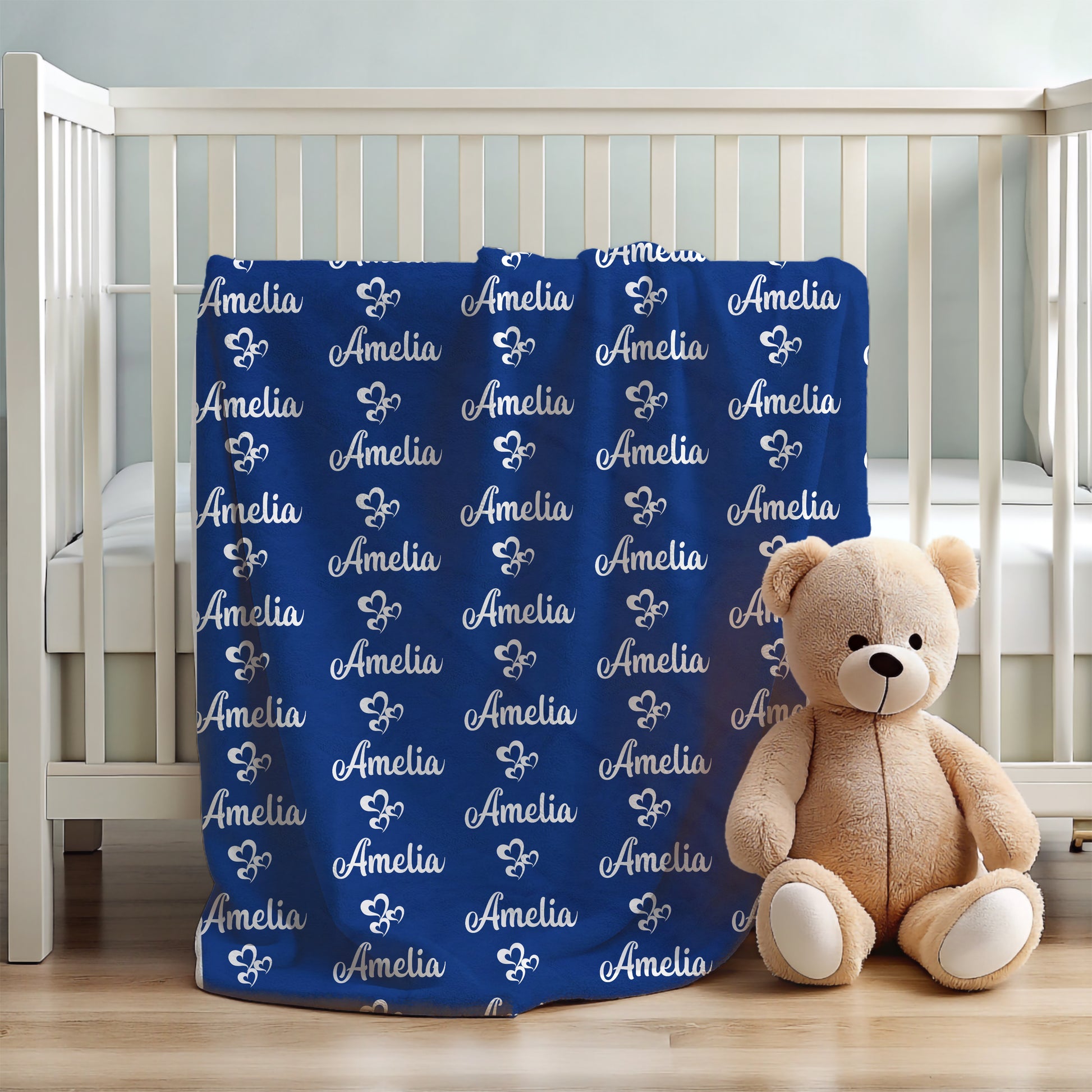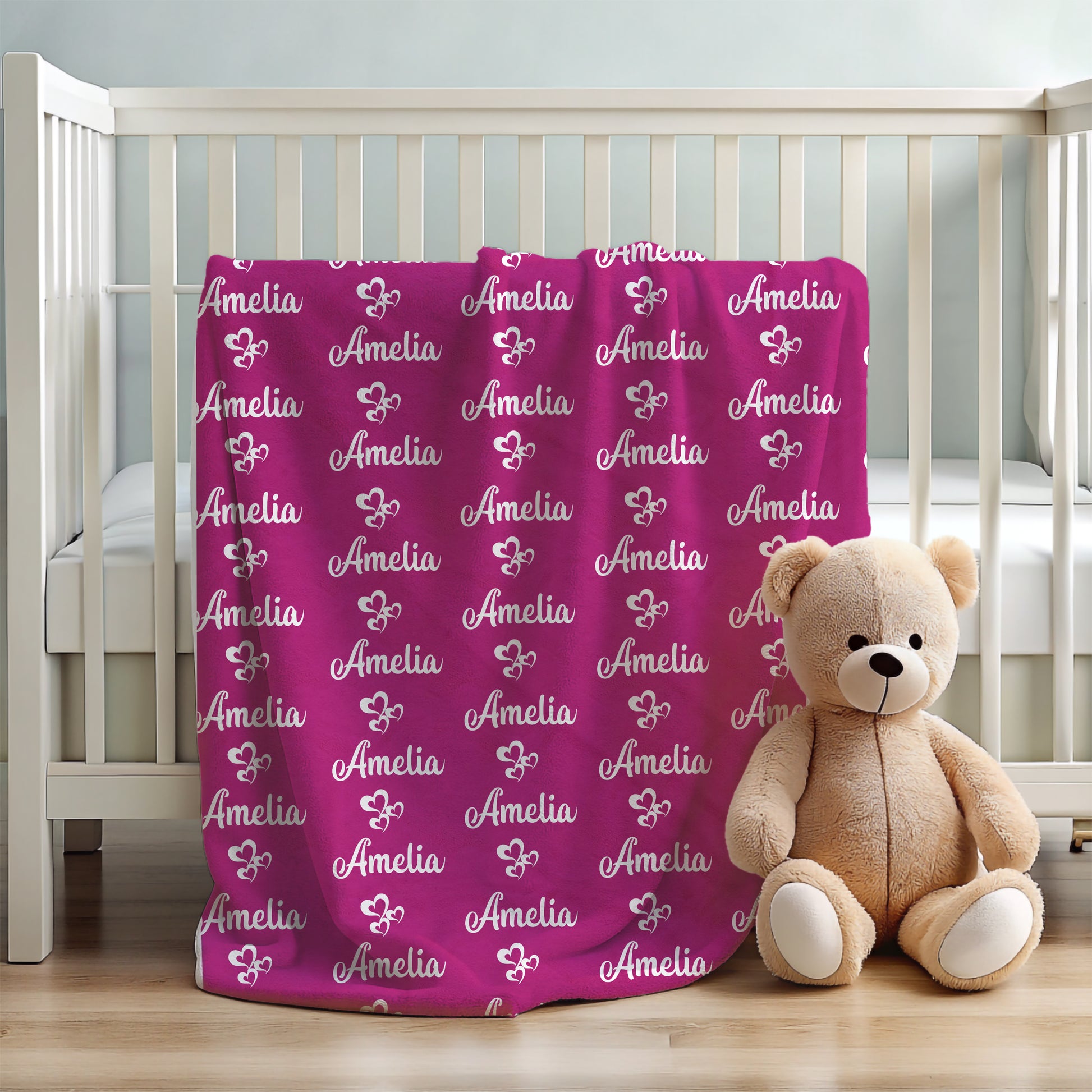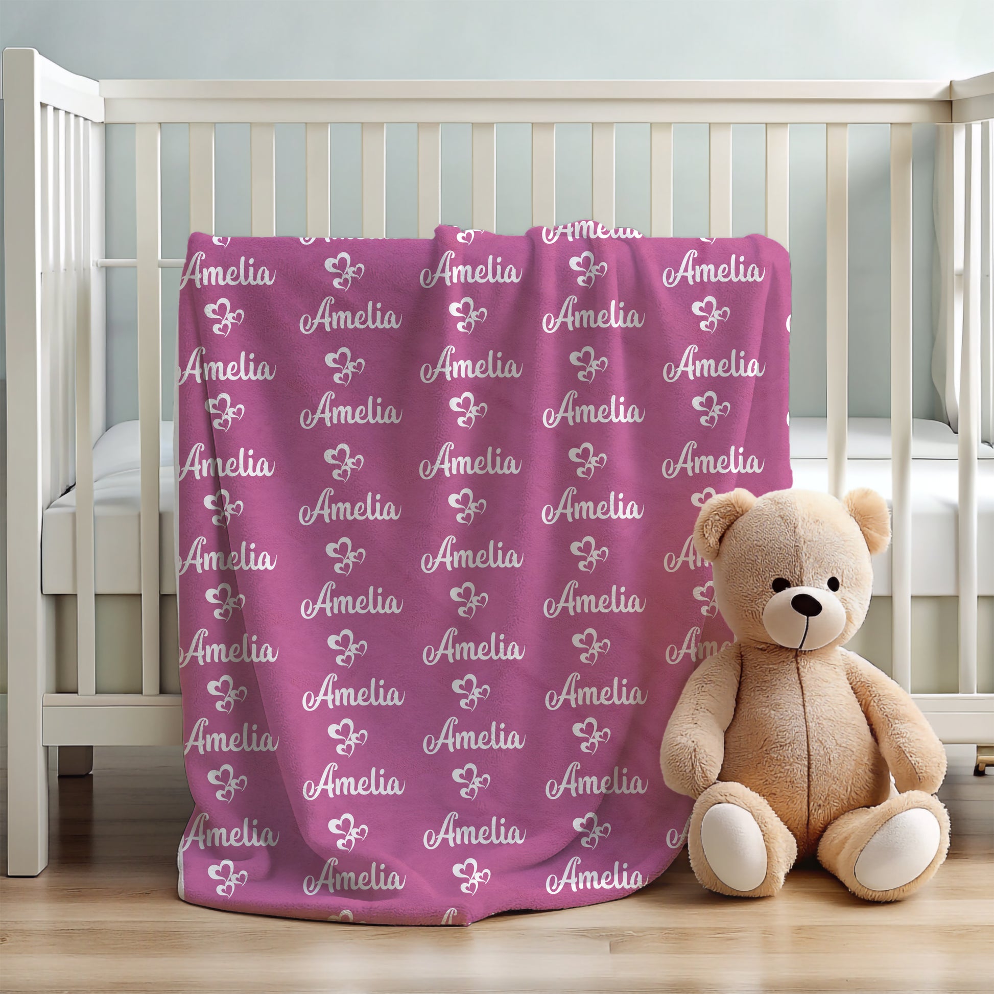 Add warmth and love to your child's room with this personalized heart name blanket, perfect for boys and girls who love all things cozy and sweet.