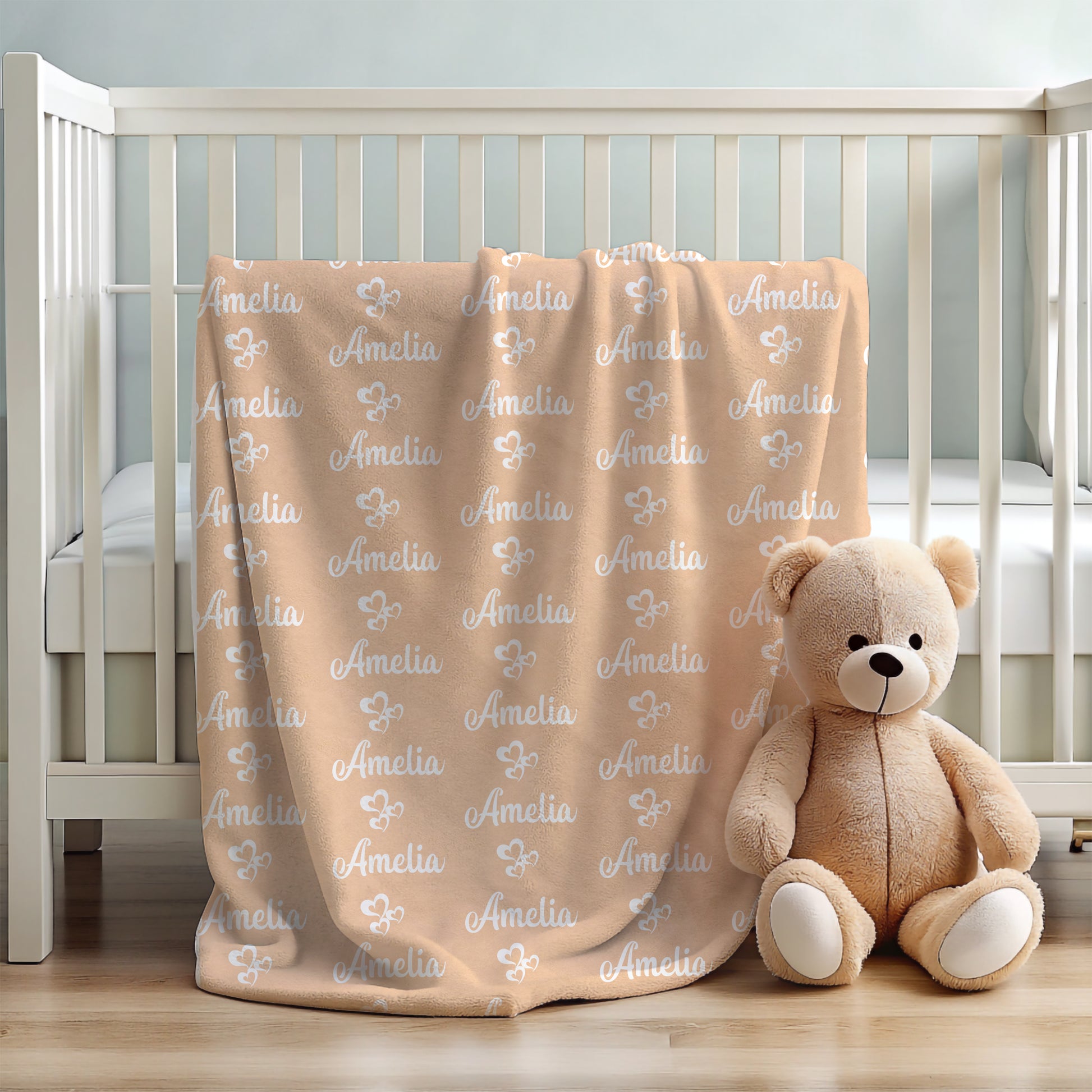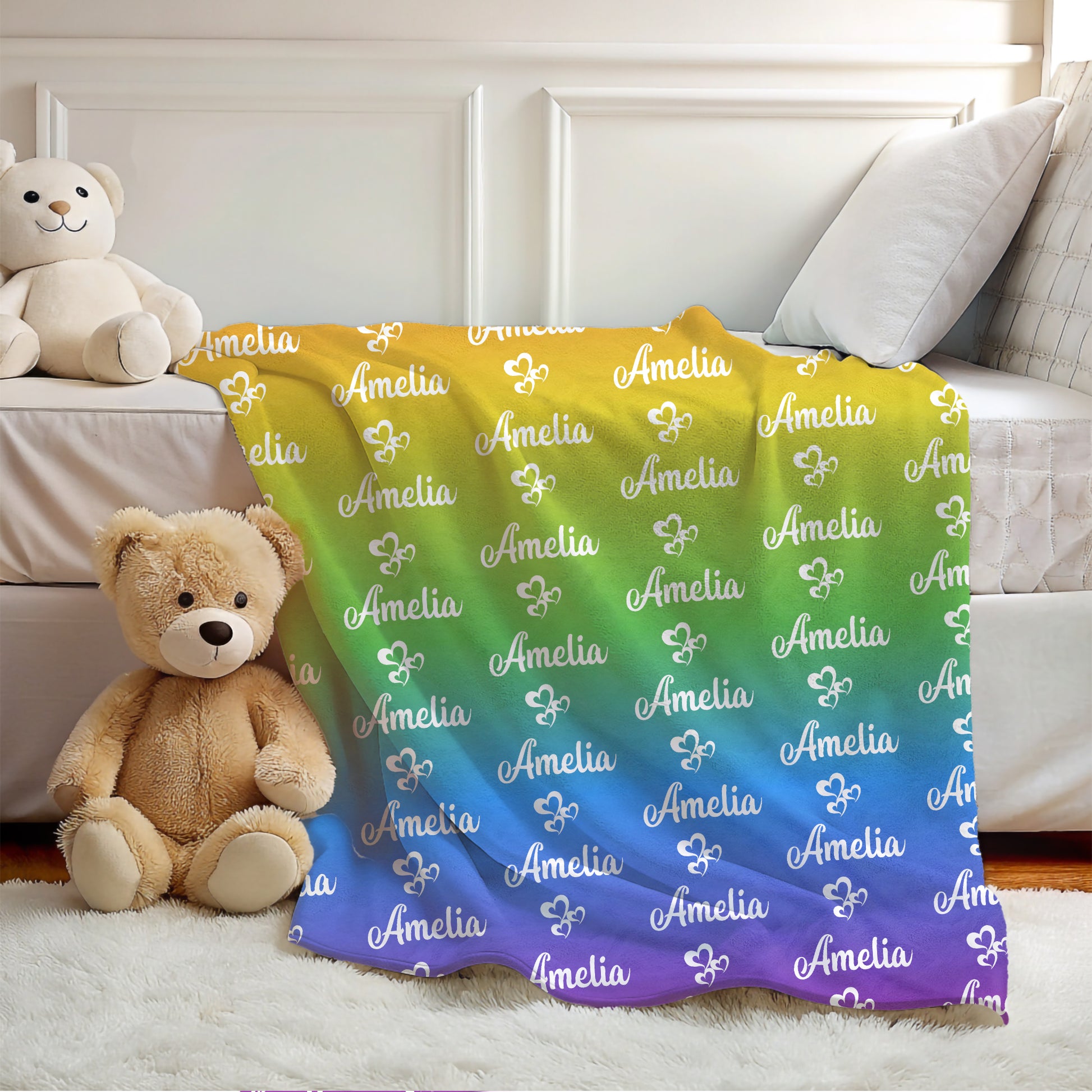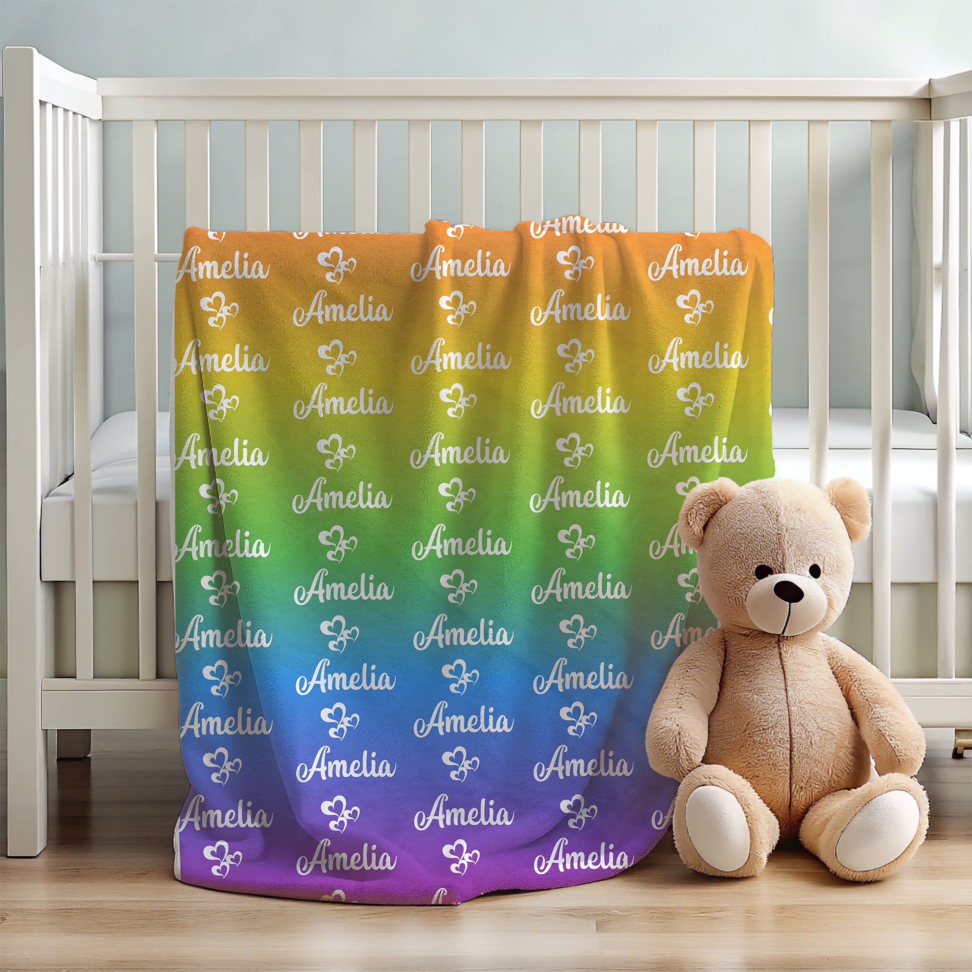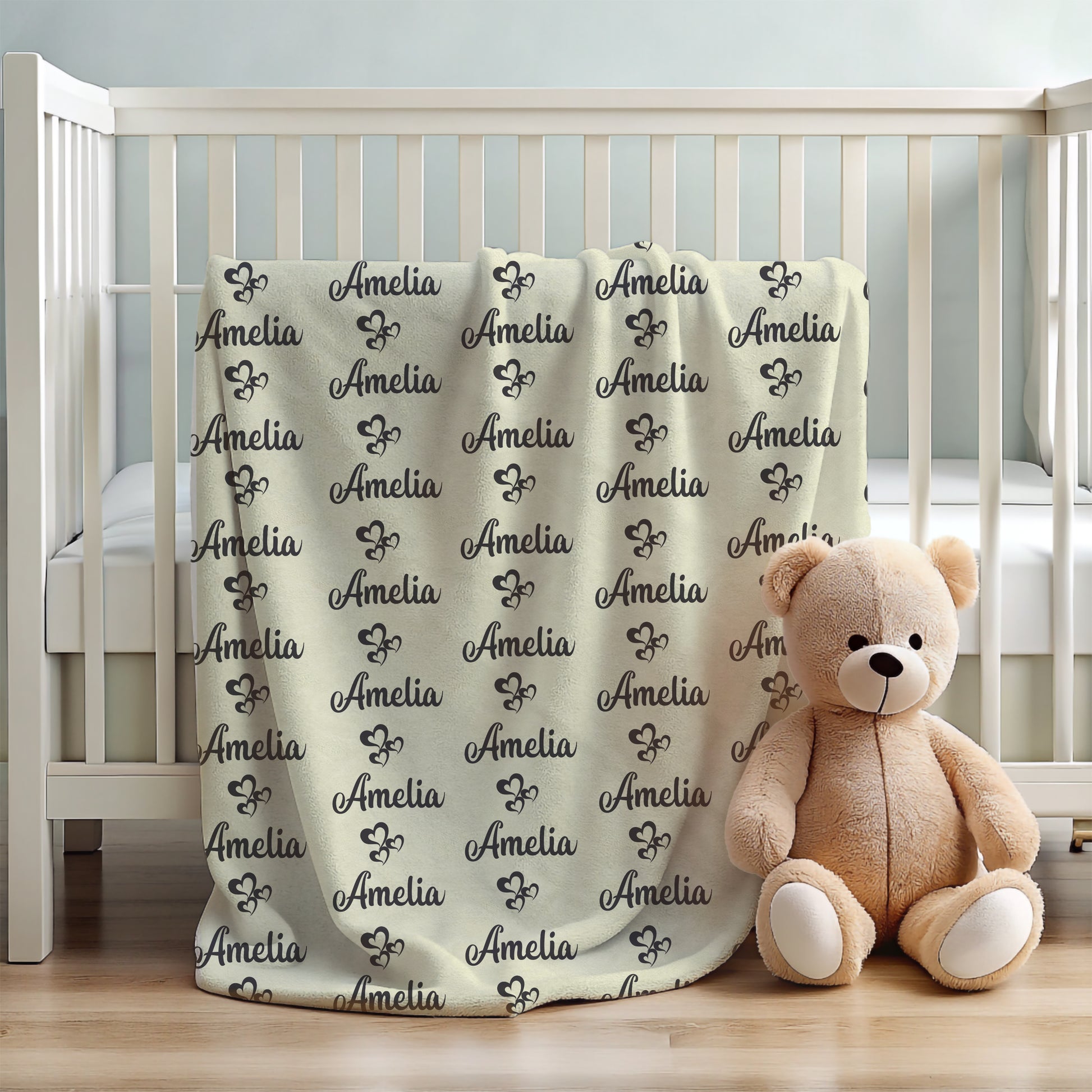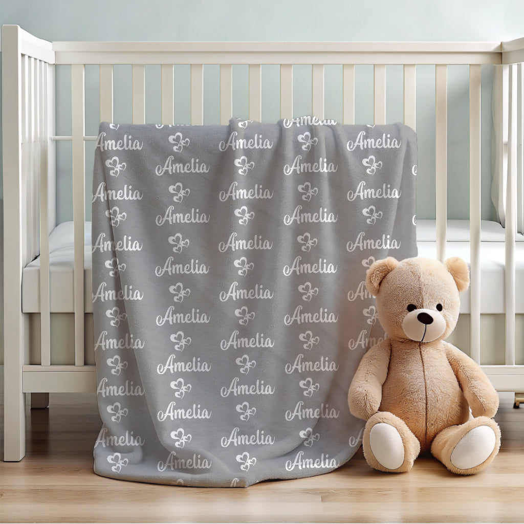 Add warmth and love to your child's room with this personalized heart name blanket, perfect for boys and girls who love all things cozy and sweet.