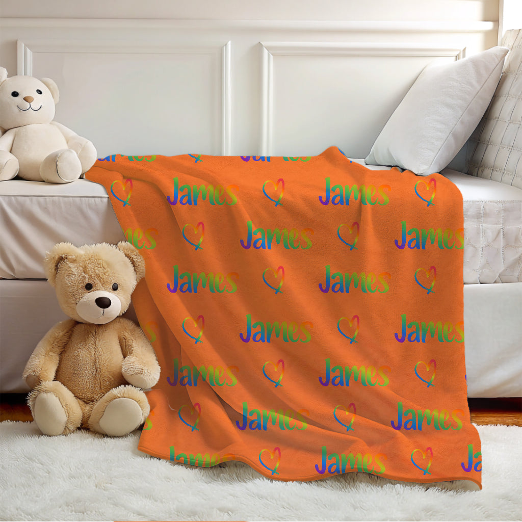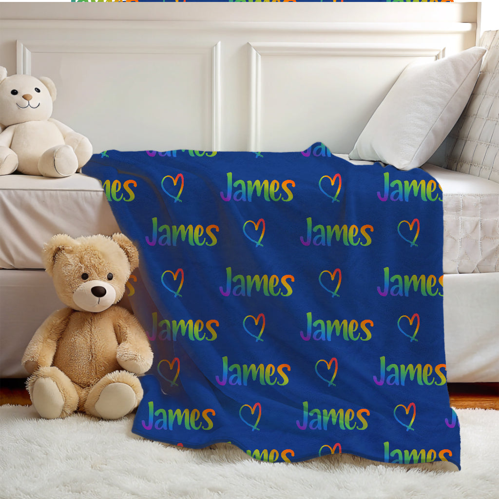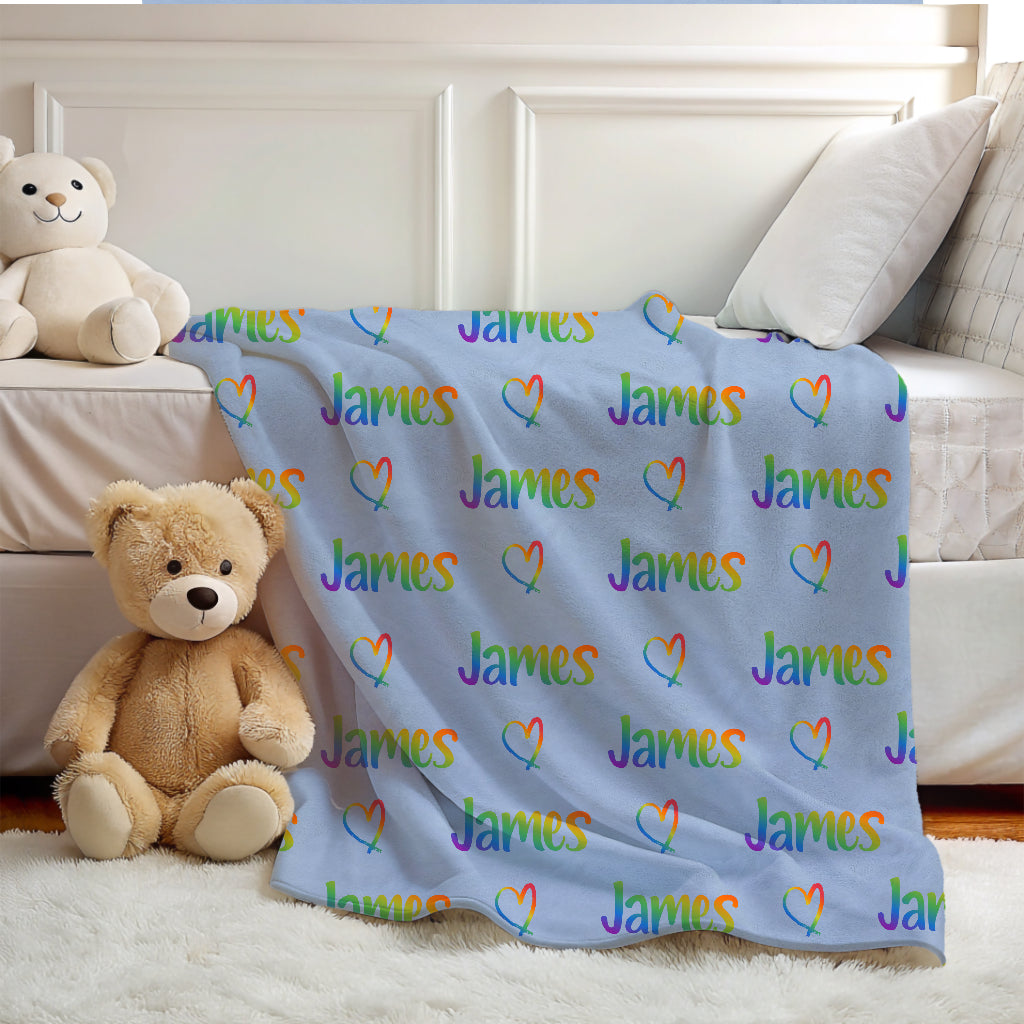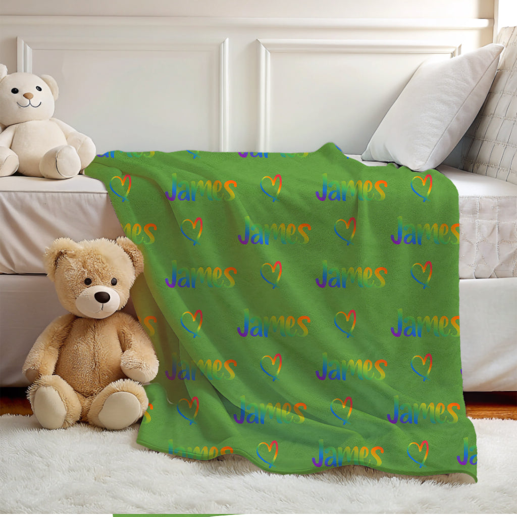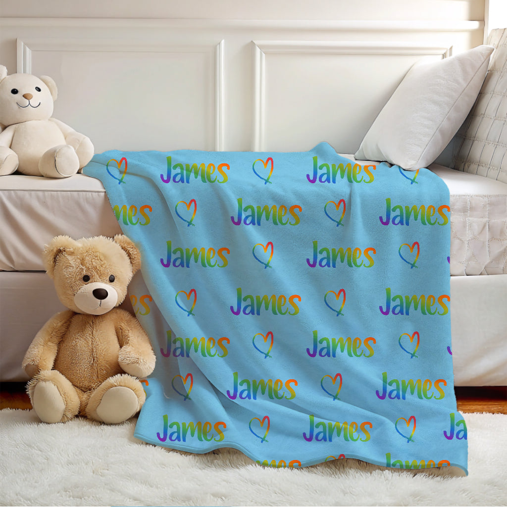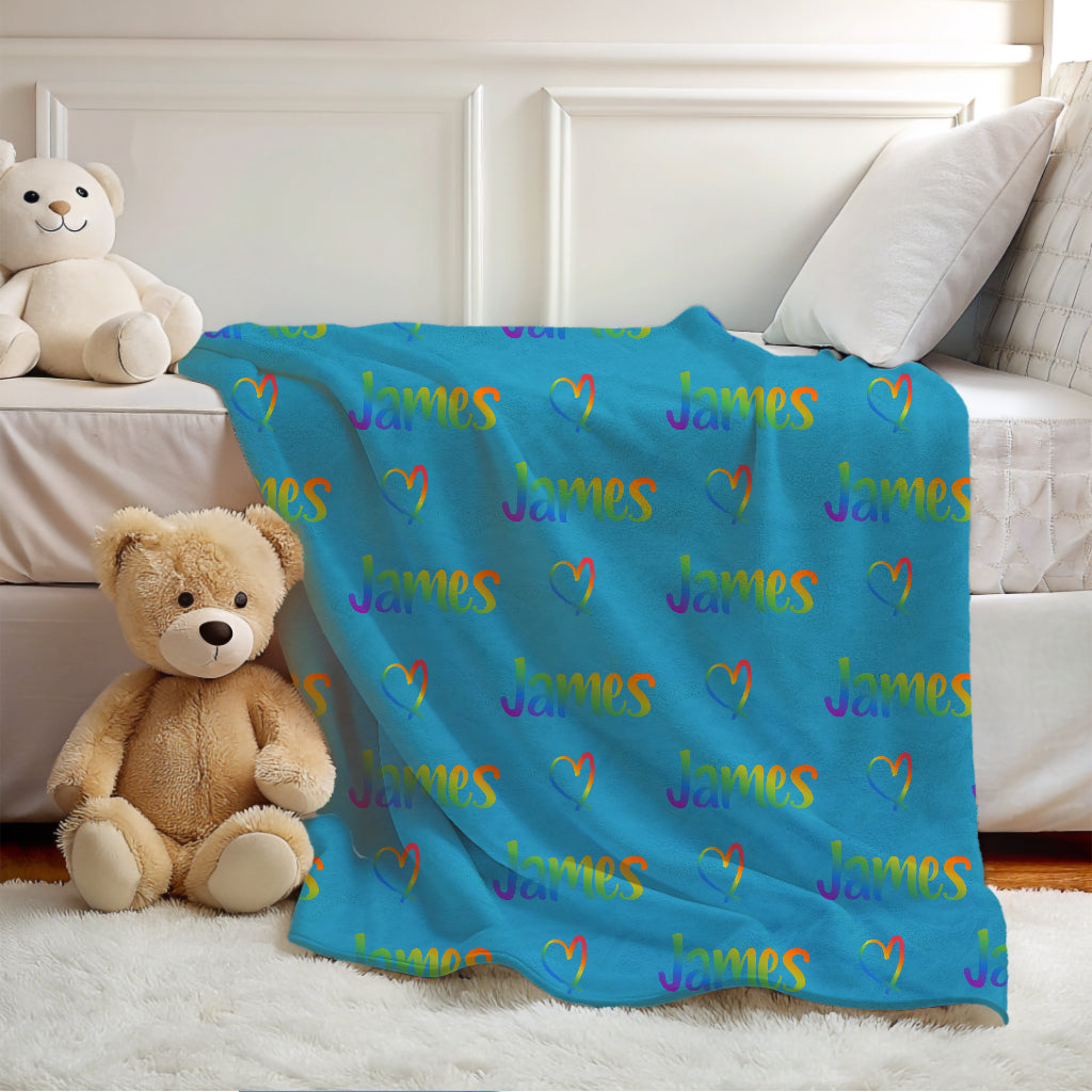 Add color and warmth to your child's room with this personalized rainbow name blanket, perfect for boys and girls who love vibrant colors and cozy snuggles.